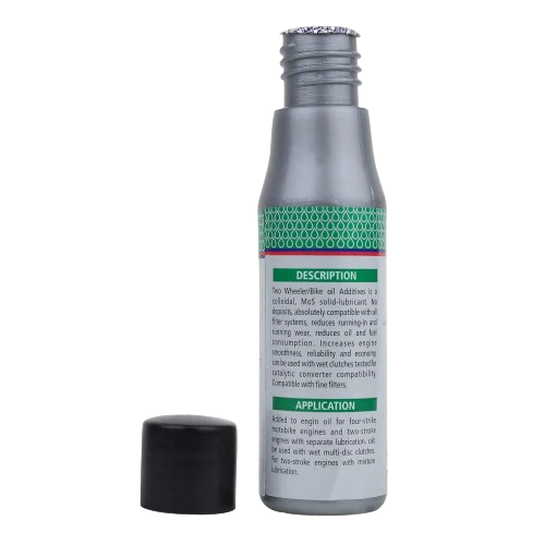 Application Engine Oil Additive: Added to engine oil for four-stroke motorbike engines and two-stroke engines with separate lubrication. Can be used with wet multi-disc clutches. For two-stroke engines with mixture lubrication, Two Wheeler Oil Additive is added to the petrol-oil mixture.